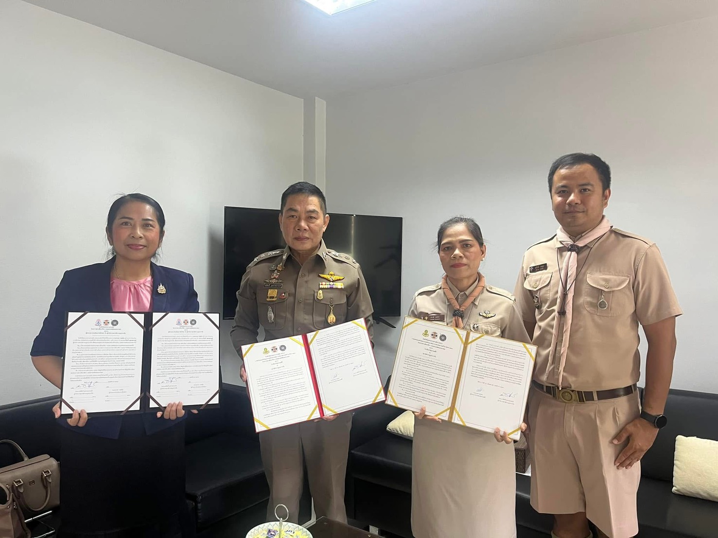 พ.ต.อ.ทวีศักดิ์ ฤทธาคณานนท์ ผกก.สภ.ปากจั่นร่วมกับสถานศึกษาในพื้นที่ นางดวงพร รอดคุ้มผู้อำนวยการโรงเรียนปากจั่นวิทยา และนางปราณี ธนบัตร ผู้อำนวยการ โรงเรียนวัดสุวรรณคีรีทำ mou โครงการโรงเรียนสีขาว