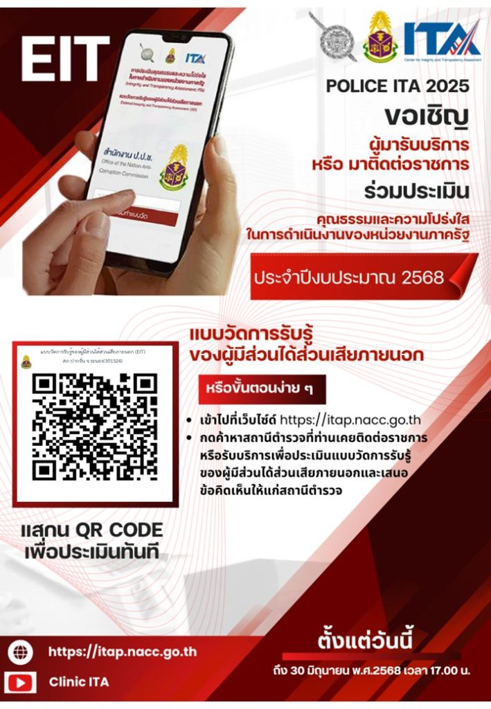 สถานีตํารวจภูธรปากจั่น ได้ดําเนินการประชุมขับเคลื่อนการประเมินคุณธรรมและความโปร่งใสในการดําเนินงานของหน่วยงานภาครัฐ (Integrity and Transparency Assessment: ITA) ของสถานีตํารวจภูธรปากจั่น ประจําปีงบประมาณ พ.ศ. ๒๕๖๘