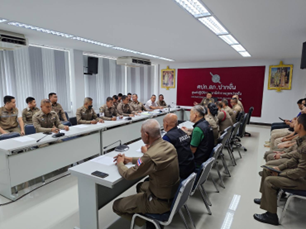 พ.ต.อ.ทวีศักดิ์ ฤทธาคณานนท์ ผกก.สภ.ปากจั่น ประชุมชี้แจงและเสริมสร้างความรู้ความเข้าใจในการจัดการทรัพย์สินของราชการ ของบริจาค และการจัดเก็บของกลาง