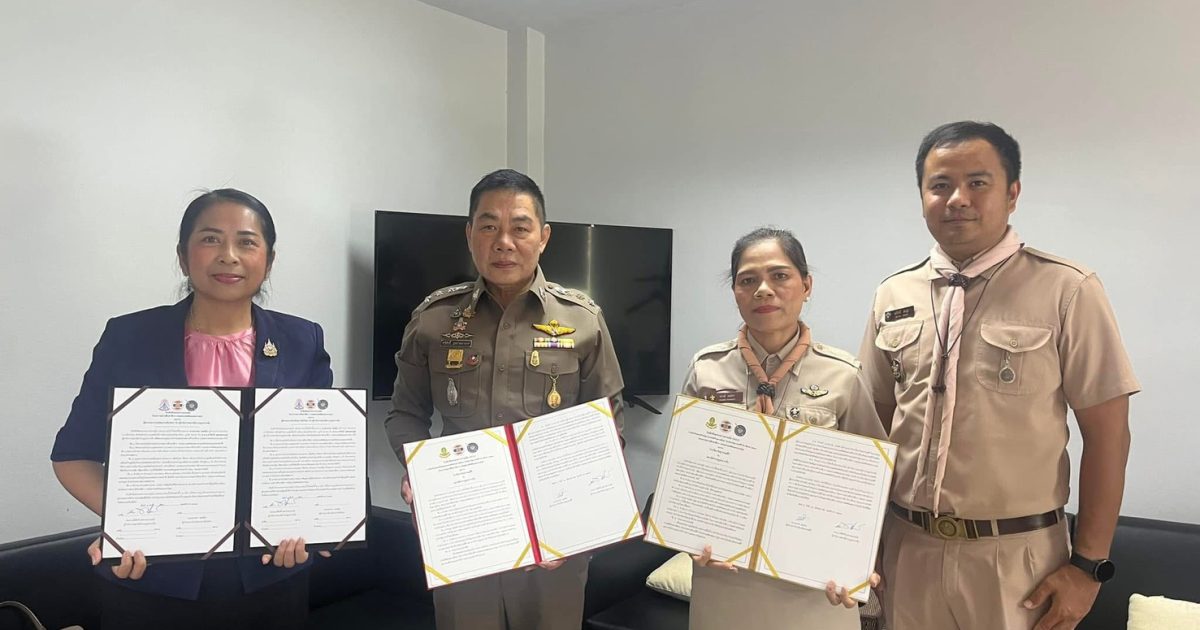 พ.ต.อ.ทวีศักดิ์ ฤทธาคณานนท์ ผกก.สภ.ปากจั่นร่วมกับสถานศึกษาในพื้นที่ นางดวงพร รอดคุ้มผู้อำนวยการโรงเรียนปากจั่นวิทยา และนางปราณี ธนบัตร ผู้อำนวยการ โรงเรียนวัดสุวรรณคีรีทำ mou โครงการโรงเรียนสีขาว