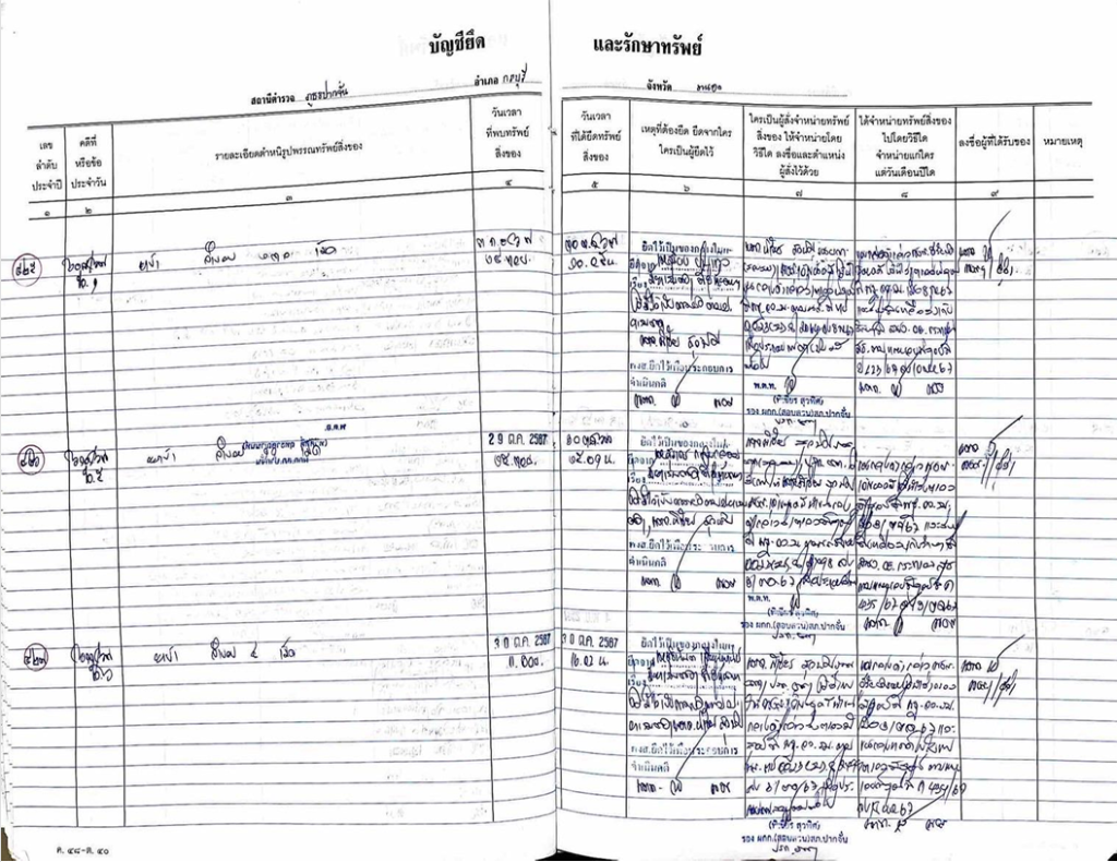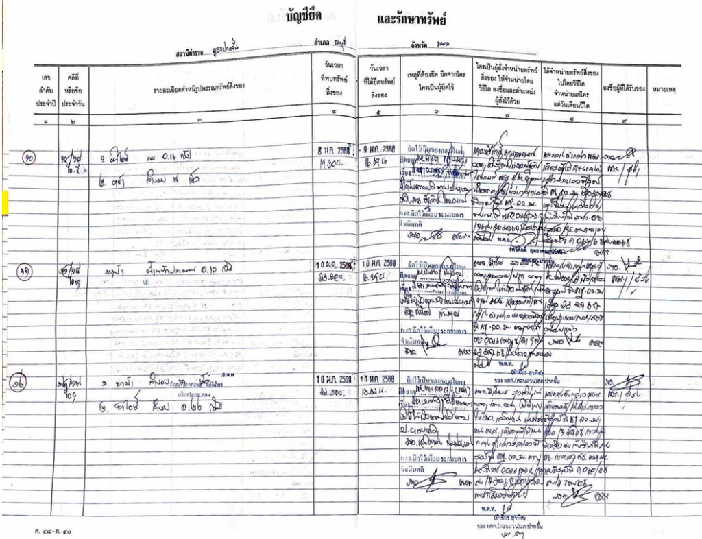 สมุดคุมการเก็บรักษาทรัพย์สินของกลาง